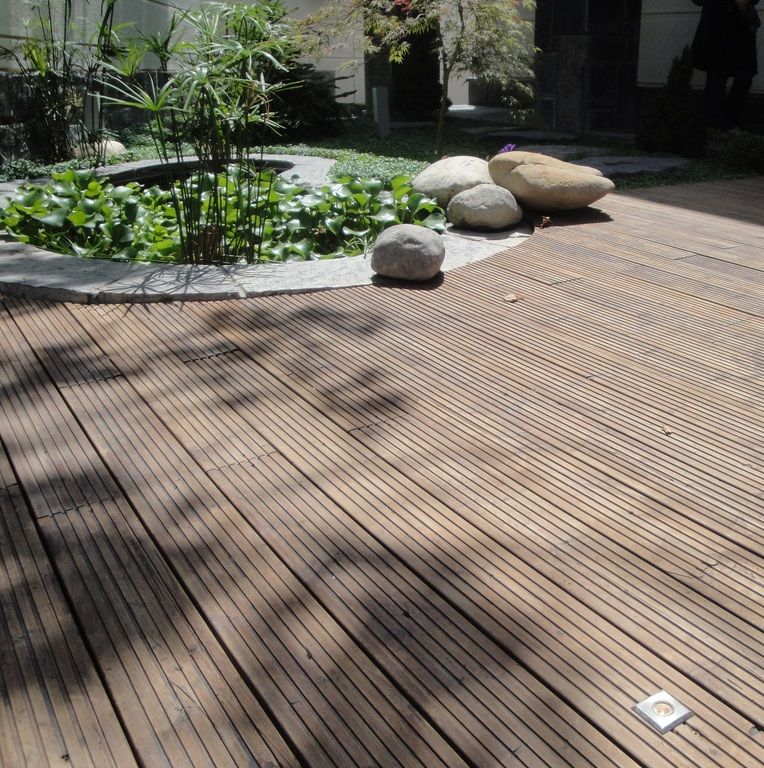 - под палящими солнечными лучами палуба или настил нагревается равномерно, просто вбирая в себя тепло;