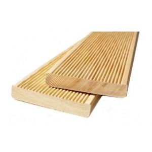 Террасная доска из Сосны обычной, характеризуется значительной сучковатостью и плотностью в районе 500 кг/м3. Сосновая террасная доска может похвалиться самыми большими объемами продаж на территории Украины. И это не зря, так как террасная доска из сосны является оптимальным соотношением цены и качества.